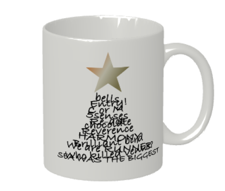 ツリーロゴをプリントしたマグカップ。